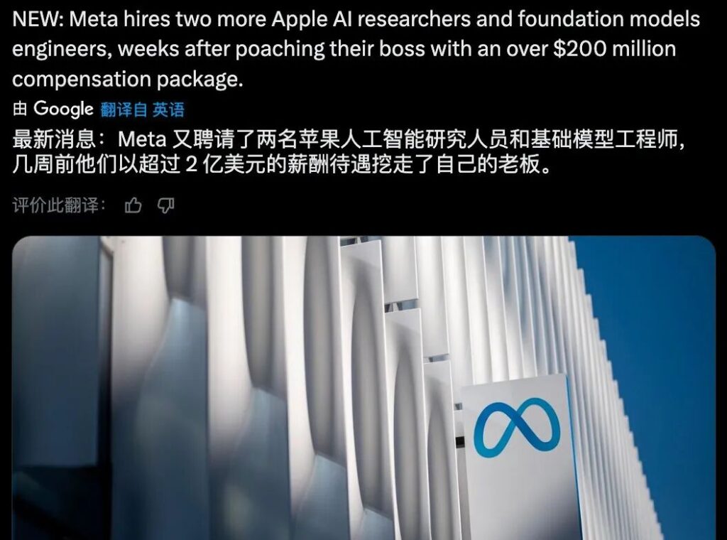 Meta最近一直在大力招募顶尖AI研究人员,本周网上盛传Meta从OpenAI斥重金挖走了数名顶尖技术专家,有的被开出的offer高达1亿美元!普通科技打工人的严峻前景与顶尖人工智能研究人员的激烈竞争形成了鲜明对比…