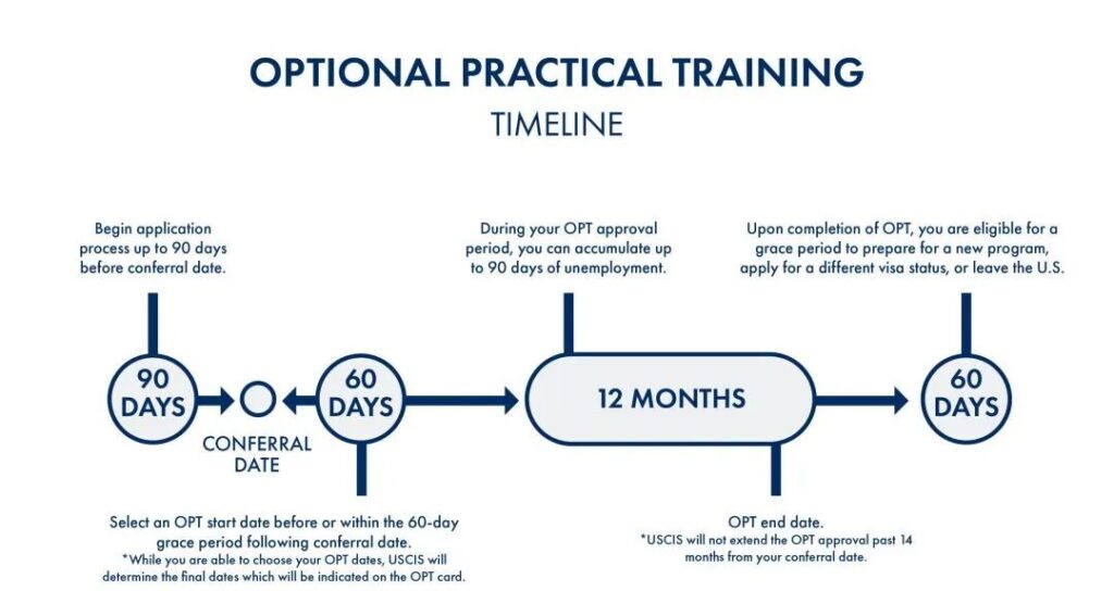 美国F1学生在毕业之后有一年的Optional Practical Training时间,简称OPT,OPT是很多在美国的中国留学生在毕业之后继续留在美国的常用方式。申请人可以在学生签证到期之后利用OPT的合法身份一边实习,一边寻找合适的工作。