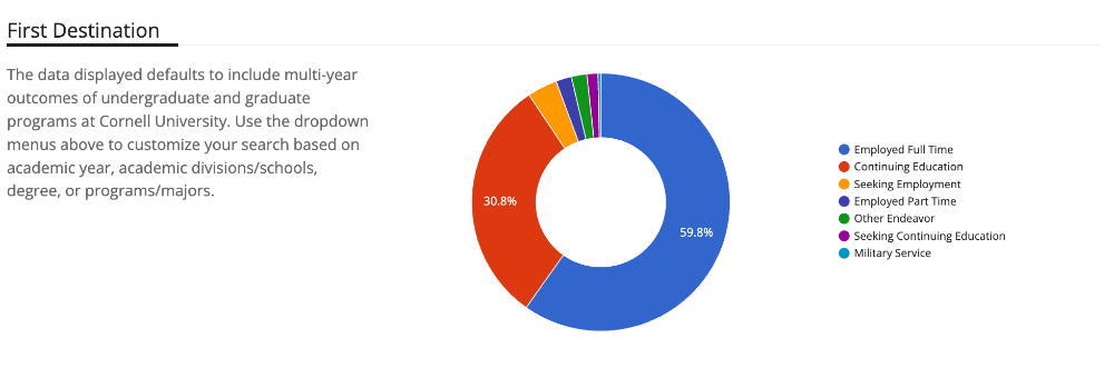 康奈尔毕业生的深造率最高,近五年一直保持在25%及以上,2024年已经涨到了30.8%。