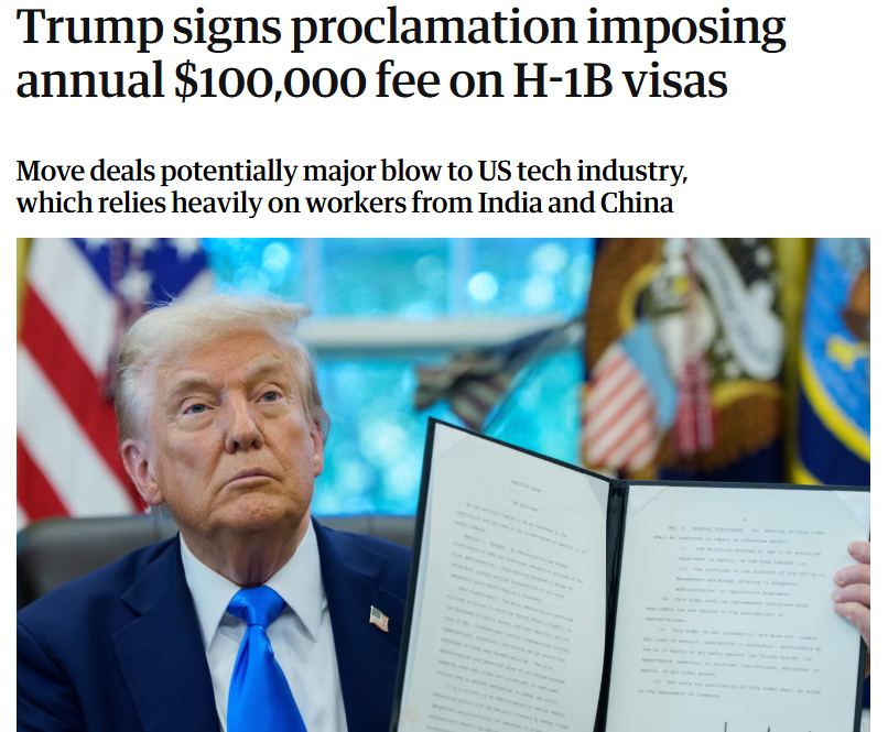 9月19日,川普签署了一项关于H-1B签证改革的总统公告,规定部分H-1B申请需额外支付10万美元费用,该政策于9月21日生效后,迅速在留学生和科技公司中引发广泛担忧。