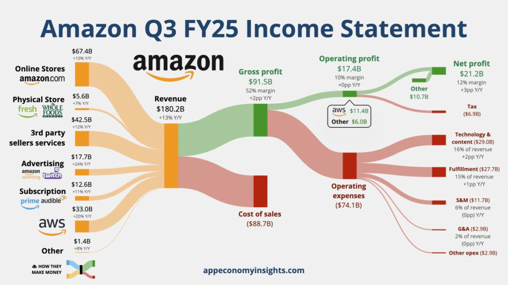 最大的积极信号来自AWS(亚马逊云服务),其销售额同比增长20%,达到330亿美元。CEO Andy Jassy在评论中称这是“自2022年以来未见的”再加速,显示AI和核心基础设施的强劲需求。